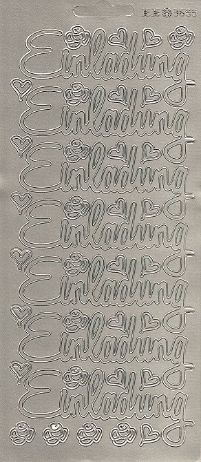 Auf diesem Reliefstickerbogen in silber befindet sich 7x der Schriftzug Einladung ca 2,5 cm hoch und 8,5 cm breit.