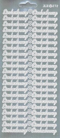 Auf diesem Reliefstickerbogen in silber befindet sich 42x der Schriftzug Einladung ca. 1,0 cm hoch und 4 cm lang.