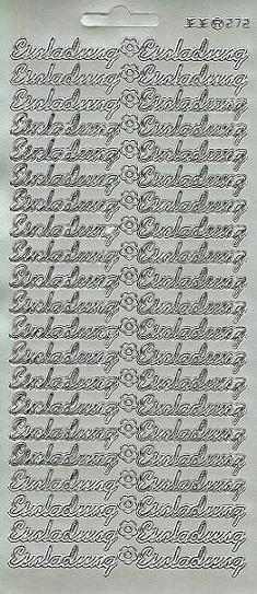 Auf diesem Reliefstickerbogen in silber befindet sich 42x der Schriftzug Einladung ca. 1,0 cm hoch und 4 cm lang.