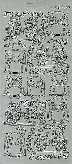 Auf diesem Reliefstickerbogen in silber befinden sich verschiedene Eulen Motive und Ornamente :