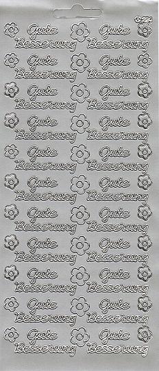 Auf diesem Reliefstickerbogen in silber befindet sich 22x der Schriftzug Gute Besserung. Beide Wörter können einzeln abgezogen werden.