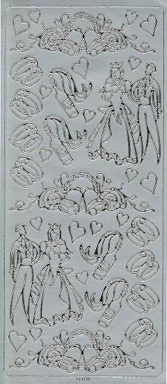 Produkt: Konturensticker silber, Hochzeitspaare und Ringe, Spiegelfolie