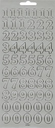 Auf diesem Reliefstickerbogen in silber befinden sich Zahlen in Spiegeleffekt 2 cm hoch und 1-1,5 cm breit in folgender Anzahl: