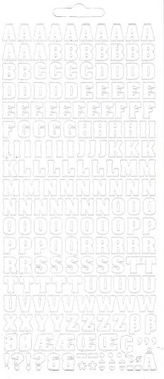 Auf diesem Reliefstickerbogen in weiß befinden sich Blockbuchstaben 10 mm hoch und 5-10 mm breit in folgender Anzahl: Diese Aufkleber eignen sich für viele Basteltechniken wie z.B. Kartengestaltung, Scrapbooking und auch Kerzenbeschriftung anstelle von Verzierwachs.