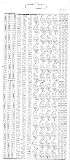 Auf diesem Reliefstickerbogen in weiss befinden sich verschiedene Borten und Lilienblätterborten.