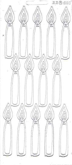 Auf diesem Reliefstickerbogen in weiss befinden sich 14 große brennende Kerzen die komplett zu verwenden sind.