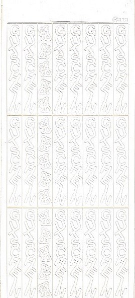 Auf diesem Reliefstickerbogen in weiss befindet sich 22x der Schriftzug Gutschein senkrecht ca. 1 cm breit und ca. 6,5 cm lang.