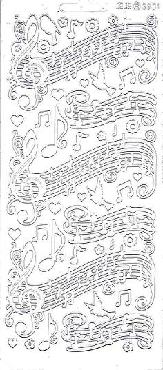 Auf diesem Reliefstickerbogen in weiss befinden sich verschiedene Notenbänder und Ornamente :