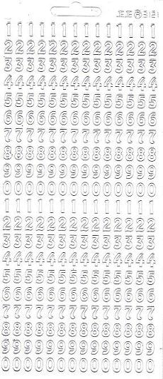 Auf diesem Reliefstickerbogen in weiß befinden sich Zahlen 8 mm hoch und 3-5 mm breit in folgender Anzahl: