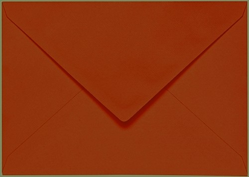 Der Umschlag in B6 ist ca. 17,8 x 12,5 cm groß und in der Farbe feuerrot.