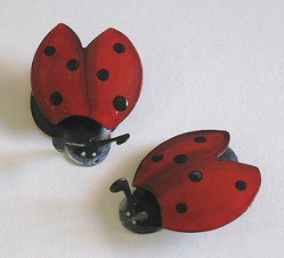 Es befinden sich 2 Stück der Metall Marienkäfer in einem schützenden Zellophanbeutel.