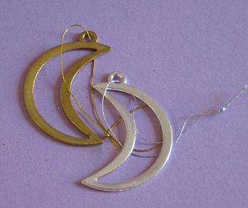 Bei diesen Mondanhängern ist das Innenteil offen und sie haben eine Öse und einen dünnen Gold- oder Silberfaden zum Aufhängen.