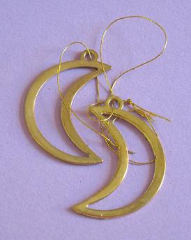 Bei diesen Mondanhängern in gold ist das Innenteil offen und sie haben eine Öse und einen dünnen Goldfaden zum Aufhängen.