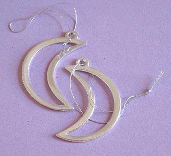 Bei diesen Mondanhängern in silber ist das Innenteil offen und sie haben eine Öse und einen dünnen Silberfaden zum Aufhängen.