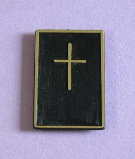 Diese schwarze Bibel besteht aus Kunststoff und das Kreuz und der Rand ist gold hochglanz veredelt.