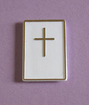 Diese weiße Bibel besteht aus Kunststoff und das Kreuz und der Rand ist gold hochglanz veredelt.
