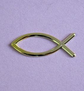 Der christliche Fisch ist ca. 4 cm lang, ca. 1,6 cm hoch und ca. 1,5 mm dick.