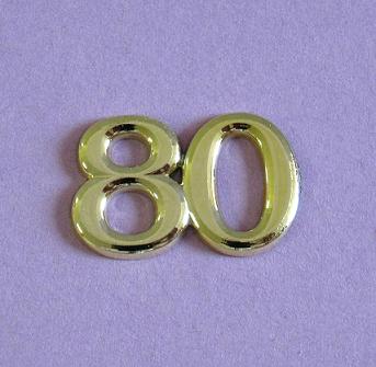 Die Jubiläumszahl 80 ist ca. 2,5 cm breit, ca. 1,5 cm hoch und ca. 1,5 mm dick.