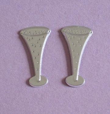 Die silbernen Sektkelche eignen sich für die Kartengestaltung und lassen sich leicht mit doppelseitigem Klebeband fixieren.