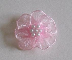 Produkt: Organza Blumen mit Perlen, rosa-pink 3 cm