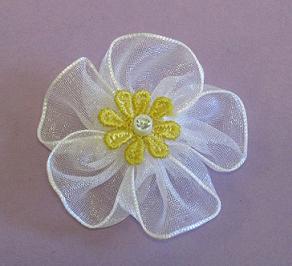 Diese Blumen wurden aus einem weißen Organzaband sehr schön geformt.