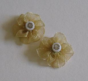 Produkt: Organza Blumen mit Strass, gold 1,5 cm