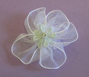 Diese Blumen wurden aus einem weißen Organzaband sehr schön geformt.