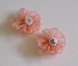 Diese kleine Blume wurden aus einem pfirsichfarbenen Organzaband sehr schön geformt.