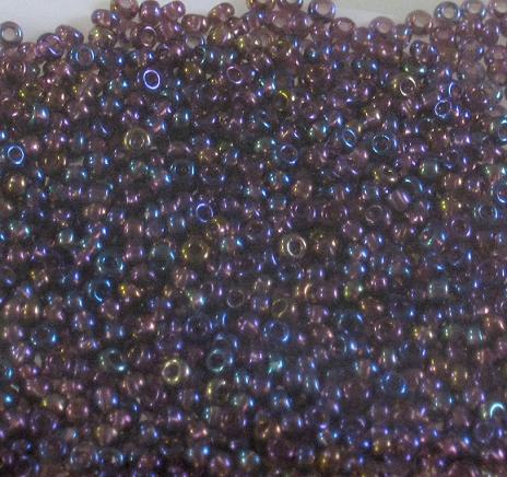 Diese Rocailles oder auch Indianerperlen aus Glas in irisierend mauve regenbogen sind in der Größe ca. 2,6 mm.