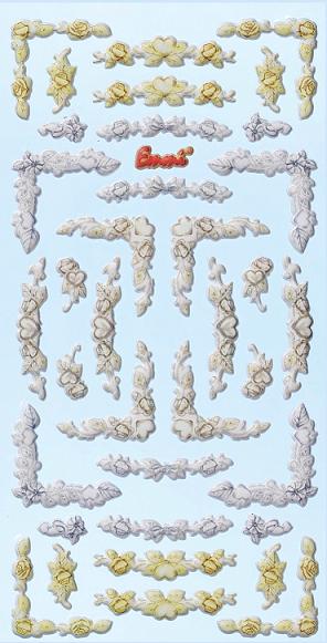 Auf diesem Softy Stickerbogen sind verschiedene Borten, und Ecken in unterschiedlichen Größen selbstklebend vorhanden.