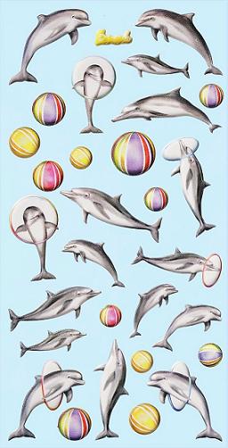 Auf diesem Softy Stickerbogen in bunt sind Motive Delphine bestehend aus 17 verschiedenen Delfinen und 12 Wasserbälle in unterschiedlichen Größen einzeln zu verwenden.