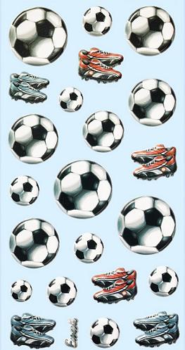Auf diesem Softy Stickerbogen in bunt sind Motive Fußball bestehend aus 16 verschiedene Fußbälle und 6 paar Fußballschuhe in unterschiedlichen Größen einzeln zu verwenden.