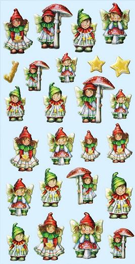Auf diesem Softy Stickerbogen in bunt sind Motive Lustige Wichtel bestehend aus 22 verschiedene Wichtel und 2 Sterne in unterschiedlichen Größen einzeln zu verwenden.