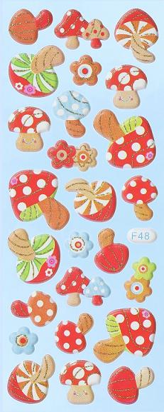 Auf diesem Softy Stickerbogen sind 20 verschiedene Fliegenpilze in den Farben rot orange und weiss selbstklebend vorhanden.