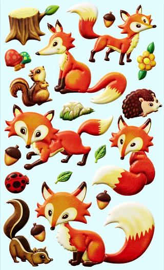 Auf diesem Softy Stickerbogen in bunt befinden sich Motive zu dem Thema Füchse in unterschiedlichen Größen einzeln zu verwenden.