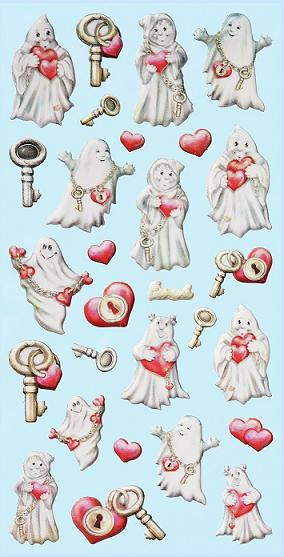 Auf diesem Softy Stickerbogen sind 13 verschiedene Lustige Gespenster in den Farben rot weiss selbstklebend vorhanden.