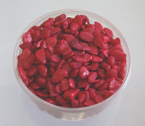 Die Dekosteine (Dekogranulat-Marmorgestein) in der Farbe königsrot gibt es in der Körnung 6 bis 8 mm, im Druckverschlussbeutel portioniert.