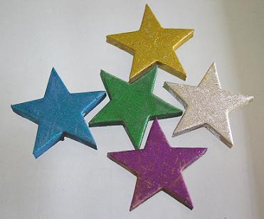 Die Sterne sind aus einem leichten Schaumstoff gestanzt und teilweise mit glänzender Folie veredelt.