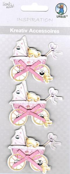 Produkt: 3D Sticker Baby Kinderwagen, rosa
