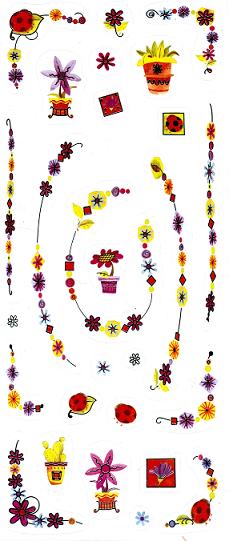 Produkt: Sticker bunt transparent, Blumenborten und Glückskäfer