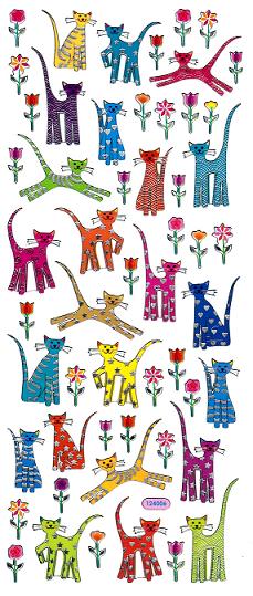 Produkt: Sticker bunt transparent, Katzen und Blumen