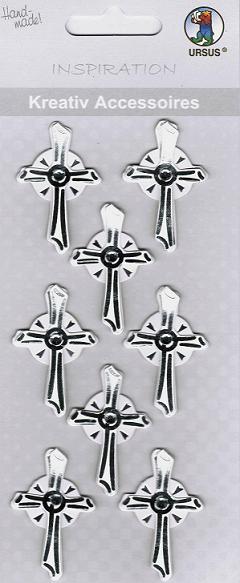 Produkt: 3D Sticker Kreuze weiss silber, 8 Stück