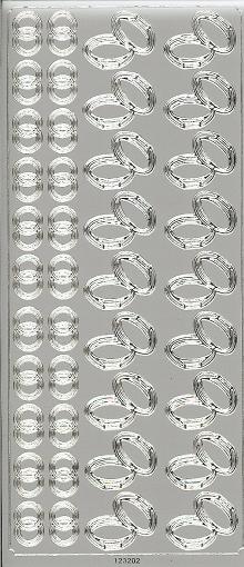 Auf diesem Konturenstickerbogen in silber sind 18x Eheringe in 30 mm breit und 25 mm hoch und 22x Eheringe in 20 mm breit und 12 mm hoch, einzeln zu verwenden.