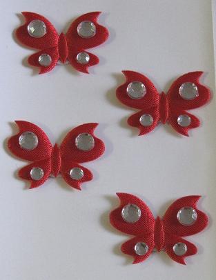 Podukt: Stoff Schmetterlinge mit Strass, rot 4 Stück