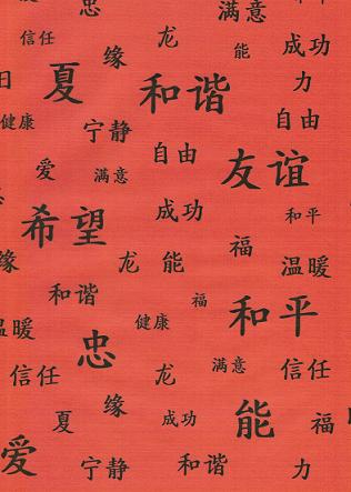 Auf diesem schönen Transparentpapierbogen von Ursus Asia in rot sind chinesische Schriftzeichen in schwarz einseitig aufgedruckt.