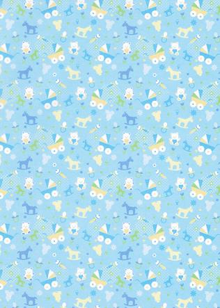 Dieses schöne Motiv-Transparentpapierbogen von Ursus aus der Serie Baby ist mit kleinen Kinderwagen, Schnuller, Bärchen und Schaukelpferdchen auf blauen Hintergrund einseitig bedruckt.