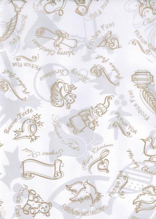 Auf diesem schönen Transparentpapierbogen von Ursus sind Motive Christmas in gold auf weiß einseitig bedruckt.