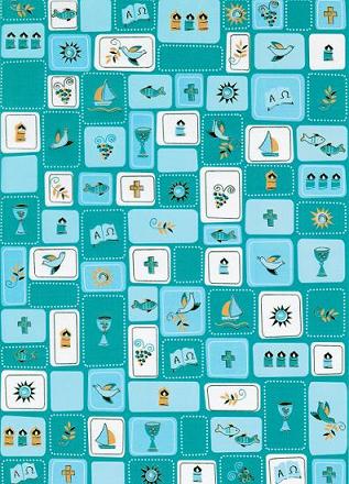 Auf diesem wunderschönen Motiv-Transparentpapierbogen Glory petrol von Ursus sind verschiedene christliche Motive als Mosaik einseitig bedruckt.