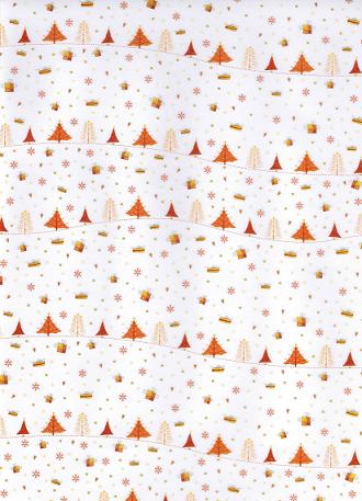Auf diesem lustigen Weihnachts-Transparentpapier befinden sich verschiedene Motive von Weihnachtsbäumen, kleine Geschenkpäckchen und kleine Schneeflocken.