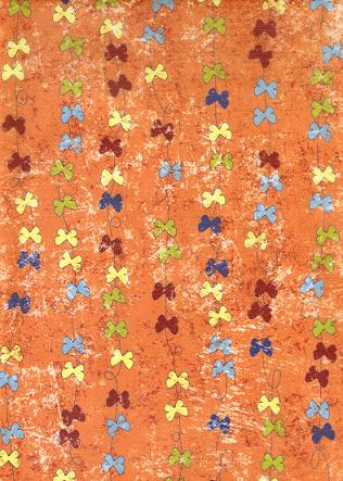 Auf diesem schönen Transparentpapierbogen von Ursus aus der Serie Paradiso sind kleine Schleifen auf orangenem Hintergrund einseitig aufgedruckt.